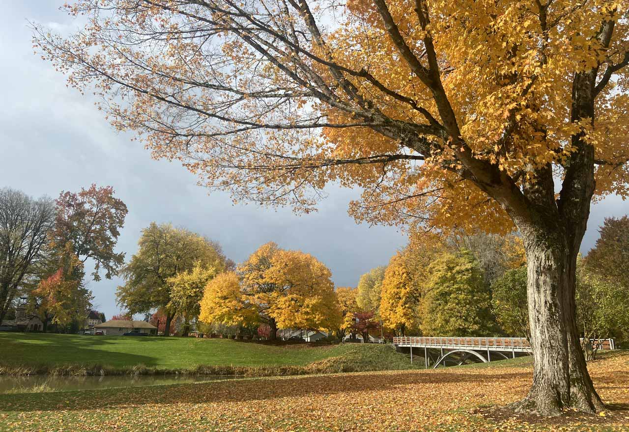 Vào thời điểm này, những tán lá phong tại công viên hồ Sacajawea chuyển màu rực rỡ, tạo nên cảnh quan đẹp mắt. Những con đường trong công viên được phủ vàng sắc lá phong, ánh nắng nhẹ nhàng của mùa thu len lỏi qua những hàng cây, tạo nên một bức tranh thiên nhiên tuyệt đẹp.