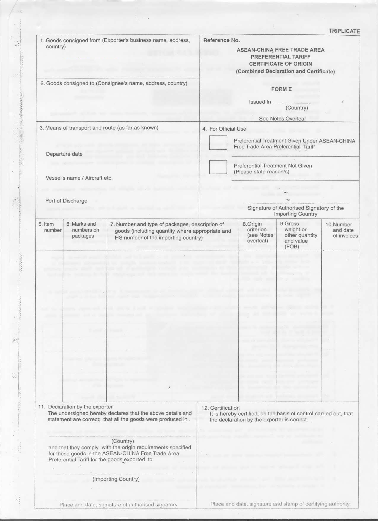 CHƯƠNG TRÌNH CẤP GIẤY C/O FORM E VÀ QUI TẮC XUẤT XỨ CHINA- ASEAN